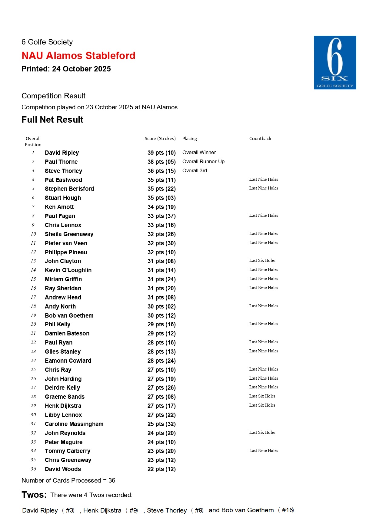 INDIVIDUAL STABLEFORD COMPETITION – 23rd OCTOBER 2025, NAU ALAMOS